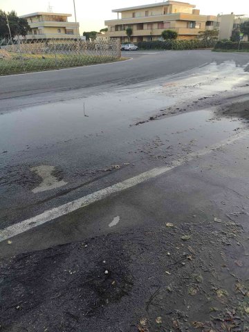 Rottura tubatura acque bianche su strada, con copiosa perdita