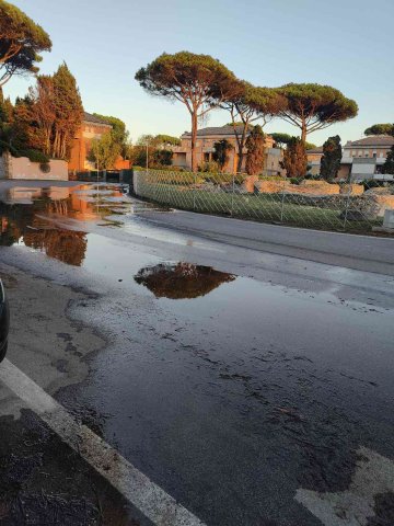 Rottura tubatura acque bianche su strada, con copiosa perdita