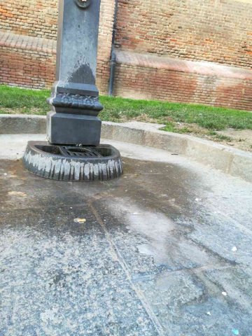 Fontanella gocciolante crea lastra di ghiaccio sul marciapiede pericolosa