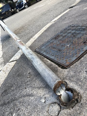 Oggi 29.09.2025 ore 16:00 circa, Intersezione via Cadolini con via Tertulliano desidero segnalare palo trovato disteso sulla carreggiata (probabilmente a causa della ruggine) con sopra cartello stradale "STOP" e sul retro "SENSO VIETATO". Allego le foto. Grazie.