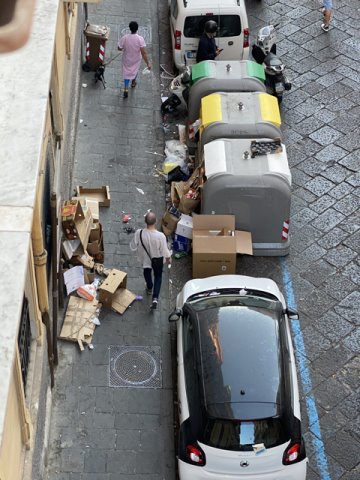 Come da foto ecco la situazione in cui versano le campane da oltre una settimana anche grazie soprattutto agli esercizi commerciali della zona! Mai nessuno per una multa!!!!