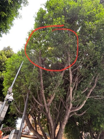 Ce bisogno di potare gli alberi della piazza! Sono state sostituiti i lampioni stradali, mettendo i nuovi efficienti a LED, ma gli alberi con le foglie ed i rami ne coprono completamente te il fascio luminoso, rendendo la piazza buia e pericolosa. È assurdo cambiare lampioni e non pensare che vengano coperti dai rami degli alberi come da foto!!!