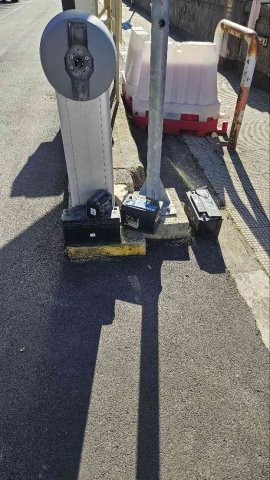 5 batterie abbandonate accanto colonnina uscita parcheggio piazza IV Novembre