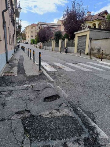 Buongiorno, invio delle foto delle condizioni del manto stradale in Via Pullino angolo Via Avigliana. Come si vede sono presenti numerose buche profonde e pericolose.