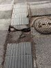 Inegato le foto che mostrano sia la buca sul percorso per i non vedenti sulle strisce pedonali che il pessimo lavoro svolto per coprire altre buche.